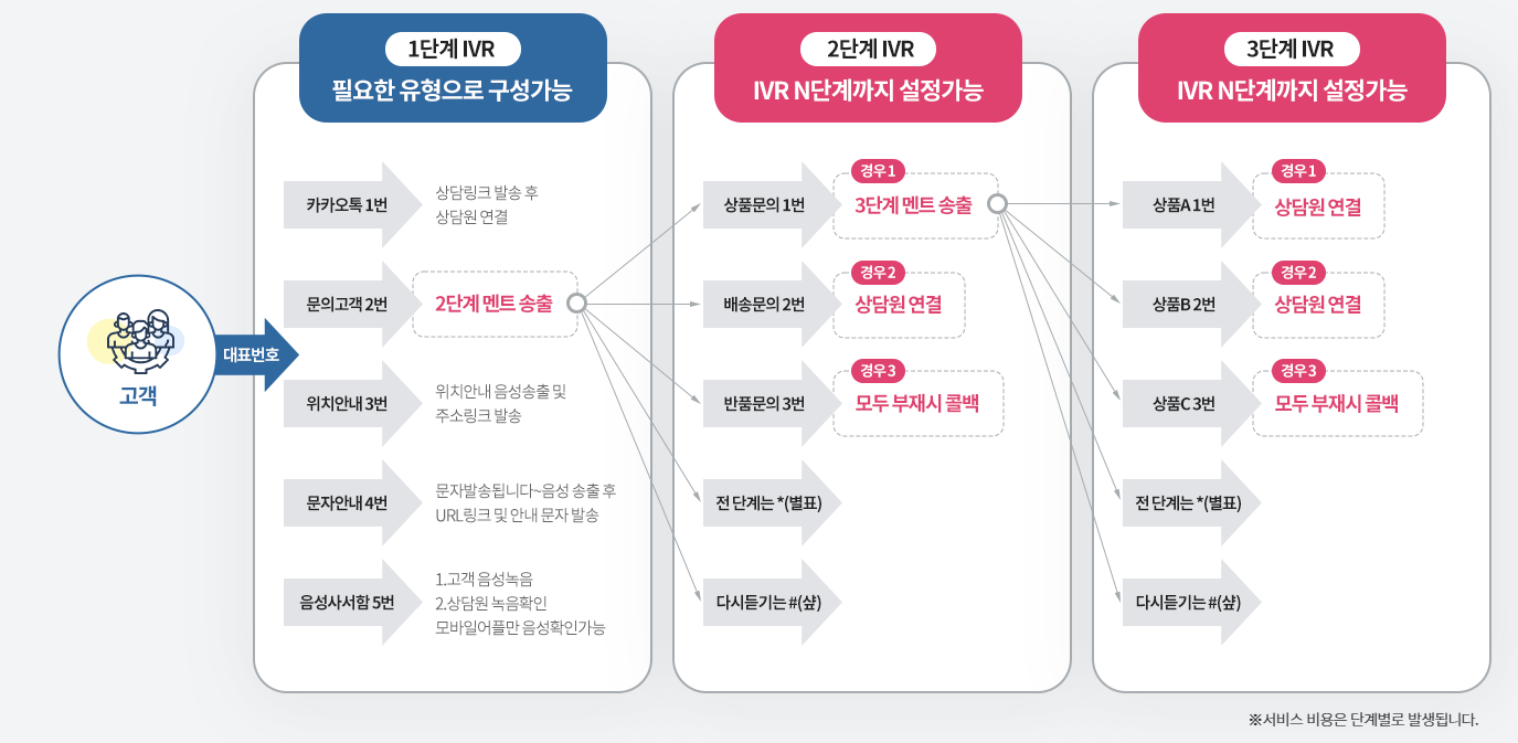 IVR은 고객이 버튼 입력이나 음성 인식을 통해 원하는 업무를 선택하면,