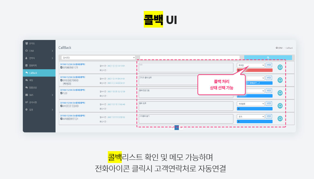 있다는 점에서 효율적인 고객 접점 수단이 됩니다. 핵심은 콜백을 전화 연결이